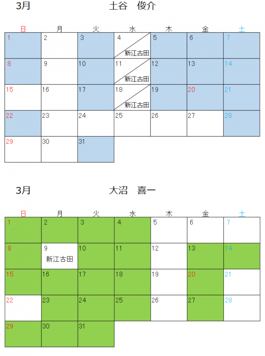 3月シフト 2020年02月21日 カテゴリー:シフト表・お知らせ コロナウイルス、インフルエンザ、花粉と外出を控えたくなることばかりですね。 手洗い、うがいをしっかりする事と、鍼やお灸、マッサージで免疫力を高めて負けずに頑張っていきましょう!! 2月に引き続き髙須先生の出勤日数が少なくなっています。担当希望の方は早目のご予約をお願い致します。 3月後半から新しいスタッフが仲間入りします。お楽しみに!! 次の記事 前の記事